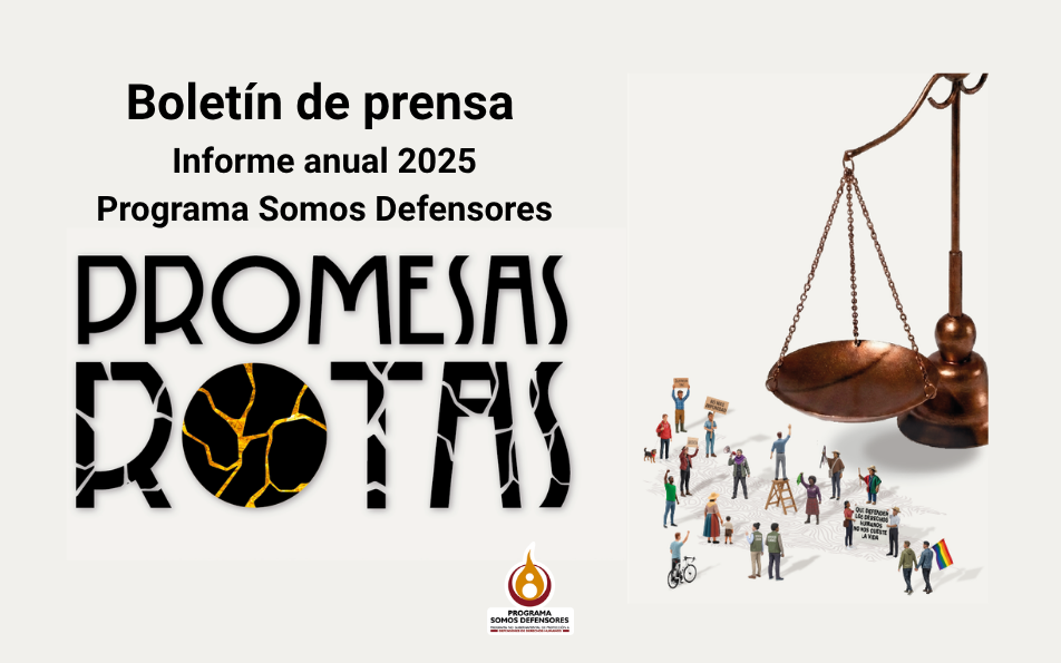 El Programa Somos Defensores es un espacio de protección que busca desarrollar una propuesta integral para prevenir agresiones y proteger la vida de las personas que corren riesgos por su labor en defensa de los derechos humanos, cuando resguardan los intereses de grupos sociales y comunidades en Colombia. La elaboración del informe Promesas Rotas conto con el apoyo de la Real Embajada de Noruega en Colombia, la Unión Europea, Global Witness, Misereor y Diakonia.