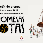 - Boletín de prensa: Informe Promesas Rotas del Programa Somos Defensores expone 874 agresiones y dentro de ellas 165 asesinatos contra personas defensoras de DDHH en Colombia durante el año 2025